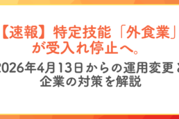 2026年3月27日、入管庁より外食業分野の特定技能受入れ停止方針が発表されました。本記事では最新データに基づき、全19分野の進捗率(上限到達度)をランキング形式で公開。飲食料品製造業など「次に危ない分野」と企業の防衛策を専門家が解説します。…